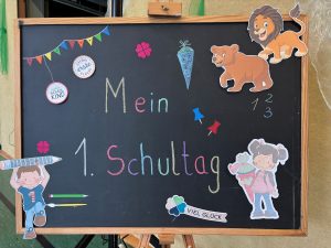 Heute war in der Violenbachschule ein aufregender Tag für alle Erstklässler: Der erste Schultag! Frau Erdtmann begrüßte alle Anwesenden in der gut gefüllten Turnhalle und